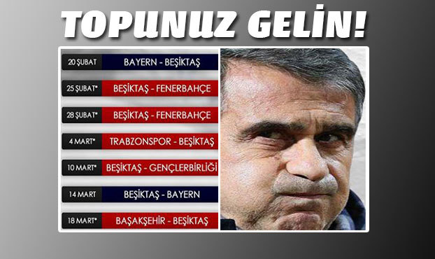 Siyah Beyazlıların zorlu maçları bununla bitmiyor. İşte Beşiktaş'ın 20 Şubat ile 18 Mart arasında oynayacağı zorlu maçlar:
