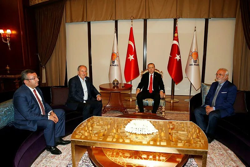 Randevu talebi Muharrem İnce'den gelirken, Erdoğan, İnce'yi Cumhurbaşkanlığı Külliyesi yerine AK Parti Genel Merkezinde kabul etti.