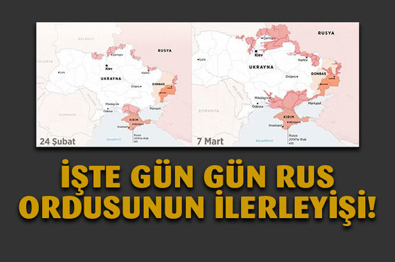 Öte yandan Rus ordusunun gün gün Ukrayna'da ilerleyişi haritalara yansıdı.