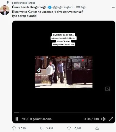 Terör örgütü PKK ve FETÖ'ye yakınlığı ile bilinen HDP Kocaeli Milletvekili Ömer Faruk Gergerlioğlu da, "Ekseriyetle Kürtler ne yaşamış ki diye soruyorsunuz? İşte cevap burada!" paylaşımı ile gerçeği çarpıtarak algı operasyonuna girişmişti.