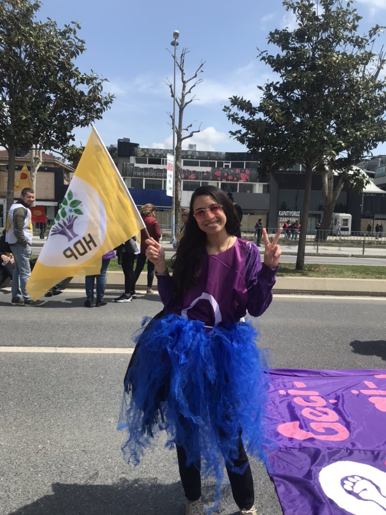Sümeyye Kavuncu’nun 1 Mayıs eylemlerinde de HDP flamasıyla poz verdiği görüldü.