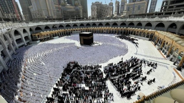 Suudi Arabistan’ın Mekke şehrinde bulunan ve Kabe’nin de içinde yer aldığı Mescid-i Haram’da Covid-19 tedbirlerinin kaldırılmasının ardından on binlerce Müslüman Cuma namazı için bir araya geldi.