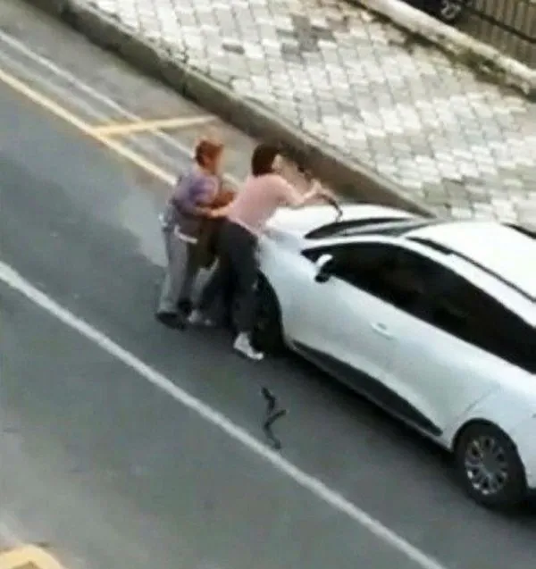 Yanında bulunan bir başka kadın, saldırgan kadını engellemeye çalışsa da başarılı olamadı. Saldırgan davranışlarda bulunan kadının önceki saatlerde de yoldan geçen iki motorlu servis çalışanına da sataştığı öğrenildi.