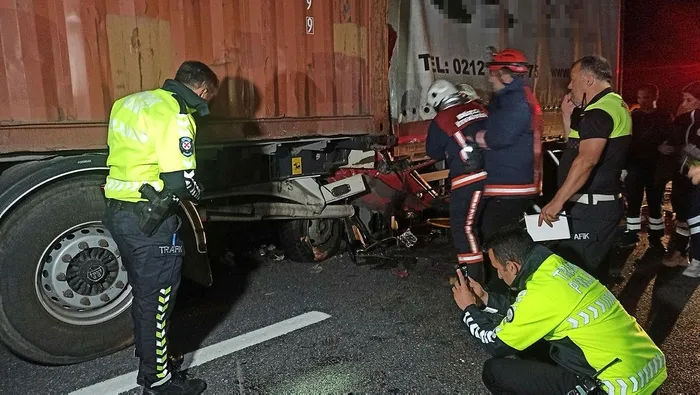 Kazaya müdahale etmek için olay yerinde gelen trafik ekipleri de kamyonun ezilerek hurdaya dönen kupasını görünce inanamadı. Ekipler, kamyonun ve tırın dorsesinde kazanın oluş şeklini anlayabilmek için uzun süre inceleme yapmak zorunda kaldı.