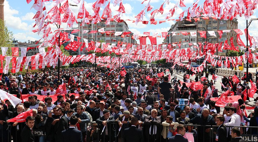 Saadet Partisi (SP) Genel Başkanı ve Cumhurbaşkanı adayı Temel Karamollaoğlu, "Biz verdiğimiz sözde her zaman durduk. Hiçbir zaman yanlışların arkasına saklanıp bahaneler üretmedik. Bugün de söz veriyoruz ki; bu görev bendenizin omuzlarına yüklenirse, bütün Anadolu'yu yeniden ayağa kaldırmaya hazırız" dedi. Karamollaoğlu ayrıca, sözlerinin yanlış yorumlanabileceğini ifade ederek, "Biz Sivas'a o kadar sahip çıktık ki şimdi hızlı treni getiriyoruz diyorlar. Ya mübarek hızlı trenin Sivas'a getireceği bir fayda demeyelim de kolaylık diyelim. Nedir o? Göçü hızlandıracak. Adam otobüsle gidip sıkıntı çekeceğine trene binip İstanbul'a biraz daha hızlı gidecek. Bu hizmet değil..." ifadelerinde bulundu.