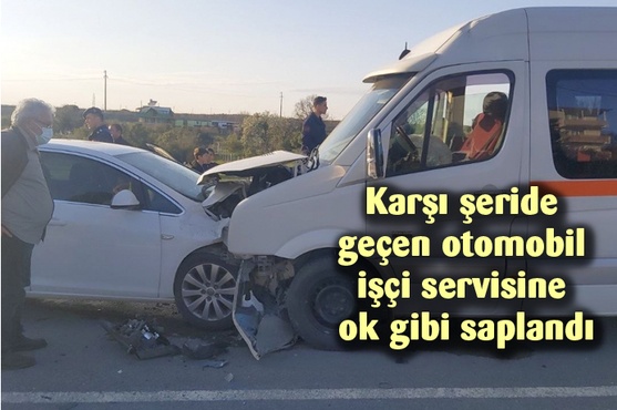 Karşı şeride geçen otomobil işçi servisine ok gibi saplandı: 6 yaralı