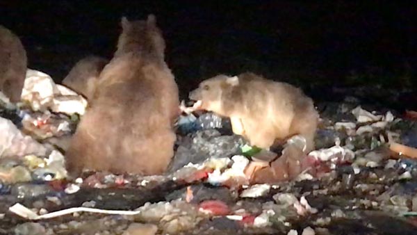 İHA ekibi daha sonra ayıları görüntülemeye devam etti. Yavrularıyla birlikte ilçe çöplüğüne gelen boz ayılar, burada çöplerin içerisinde buldukları yiyeceklerle karınlarını doyurdu. Ayılar daha sonra çöplükten ayrılarak Sarıkamış ormanlarının derinliklerde gözlerden kayboldu.