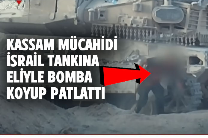 Bir kassam savaşçısı Gazze'nin girişindeki İsrail tankına koşarak gitti. Elindeki bombayı tanka koyup sağ salim geri döndü.