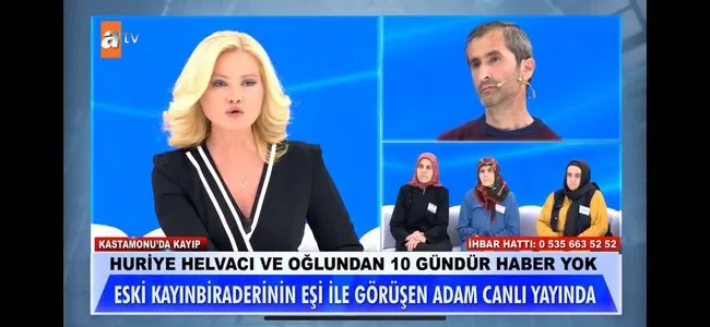 Bunun üzerine iddiaların odağındaki eski enişte, canlı yayına katıldı. Huriye Helvacı'nın görümcesinin eski eşi Mustafa Bey, kaybolmadan birkaç gün önce Huriye Helvacı ile görüştüklerini belirterek, "Arada nasılsın diye arardı, kaybolmasıyla hiçbir ilgim yok" ifadelerini kullandı.