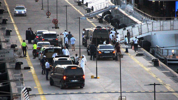 Aile limana geldiğinde ve yat girişlerinde yüksek sesle sirenler çalındığında güvenlik keskin bir gözcülük yaptı.