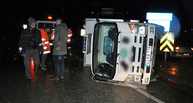 Kütahya’nın Simav ilçesinde yolun kaygan olması nedeniyle kontrolden çıkan kamyonet devrildi, sürücü kazadan hafif yaralanarak kurtuldu.