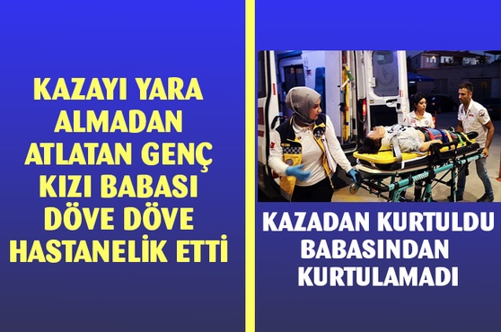 Kazadan yara almadan kurtulan kızını döve döve hastanelik etti