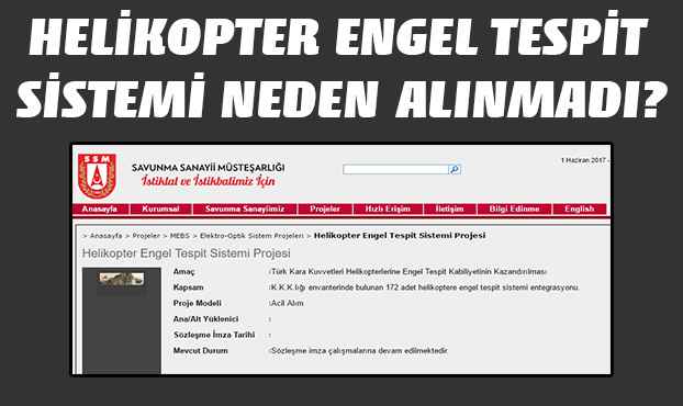 Helikopter Engel Tespit Sistemi, elektrik tellerini görmek için var. 2014'te alım ilanı verildi. Fakat gerekli imzalar yıllardır atılmıyor.