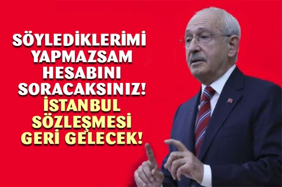 Önemli bir meselede şahitliğinize ihtiyacım var diyen Kılıçdaroğlu, "Kadına yönelik şiddetle mücadelemiz hemen başlayacaktır, İstanbul Sözleşmesi'ni ilk bir hafta içinde yeniden yürürlüğe koyacağız. Kadına şiddet davalarına bakan özel yetkili mahkemeler ve Yargıtay'da ayrı bir ceza dairesi kurulacak altı ay içinde. Tüm savcı ve adli kurumlarla çalışanlar bu konuda özel bir eğitim alacak. Her polis karakolunda ev içi şiddet konusunda eğitim almış ekipler bulunaca ve içlerinden en az biri kadın olacak.