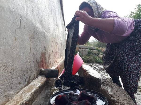 Güllü Çakırgöz: "Sularımız akmadığı için merkezde oturan ablama çamaşırları götürüyorum. Makineler çalışmıyor eski çağlara döndük çocuklar banyo olamıyor abdest alamıyoruz. Alım gücüm olsa tanker alacağım ama eşim vefat etti, 3 çocukla mı uğraşıyım? 4 aya yakın su yok susuzlukla mı? El arabasıyla köyün çeşmesinden su çekiyorum. Allah hepimize yardım etsin Allah'tan tek dileğim su. Aylardır su yok evler ve bizler koktuk bizim ne günağımız var."