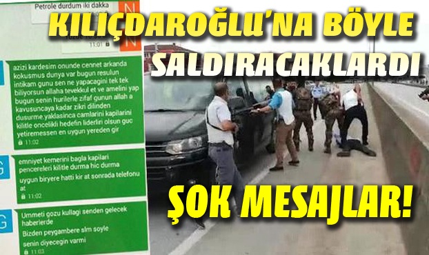 Tespit edilen mesajlarda DAEŞ’in suikast timlerini kadın vadiyle kandırdığı, ve üyelerine polisi düşman gibi gösterdiği belirlendi. DAEŞ’li teröristlerin birbirileriyle haberleşmek için OTR adlı anlık mesajlaşma programı kullandıkları ve birbirilerini ise N ile G olarak kaydettikleri ortaya çıktı. Mesajlarda DAEŞ’lilerin sürücüyü, polis noktaları konusunda uyardığı dikkatli olmasını istediği görülüyor. Mesajların en şok edici ifadelerinde ise liderin sürücüye korteje yaklaştığında hedefinin önce Kılıçdaroğlu, o olmazsa en uygun yerden kortejdekilere saldırmasını söylemesi yer alıyor.