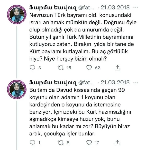 İBB İnanç Masası sorumlusu Vedat Kara, Türklerin soykırım yaptığı yalanına sarılırken, aynı birimde çalışan Fatma Yavuz ise Mustafa Kemal Atatürk'e ve Türk milletine hakaret etmişti. İşte o tweetler;