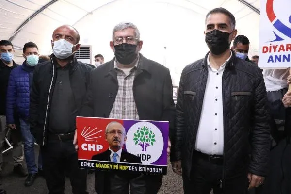 Elinde, "Bende ağabeyimi HDP'den istiyorum" yazılı fotoğrafı ile çadıra gelen Celal Kılıçdaroğlu, "Kemal abimi PKK ve FETÖ eline geçirmiş. Diyarbakır annelerine hem destek olmaya hem de ağabeyimin bırakılması için geldim" dedi.