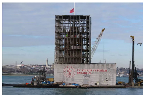 Kültür ve Turizm Bakanlığı'nın 2021 yılında başlattığı restorasyon çalışmaları nedeniyle Kız Kulesi'ni çevreleyen branda geçtiğimiz ay fırtına sonrası uçtu.Brandanın uçmasıyla Kız Kulesi restorasyonunda son durum ortaya çıktı.Kulenin külah kısmı özgün malzemeye uygun olarak yenilenmesi çalışmaları sürüyor.