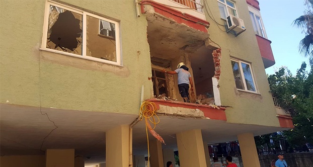Mersin'in Anamur ilçesinde klima motorunun patlaması sonucu apartman dairesi harabeye döndü. Patlamanın etkisiyle evin bir duvarı yıkılırken, 1 kişi yaralandı.