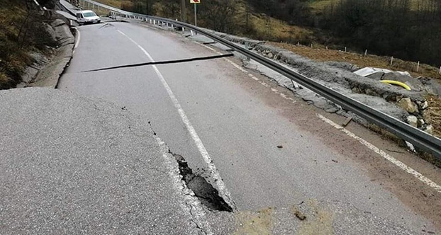 Kocaeli’nin Kandıra ilçesinde sağanak yağış nedeniyle üzerinden araç geçtiği sırada bir yol çöktü. Çökme sonrası yol trafiğe kapatıldı.