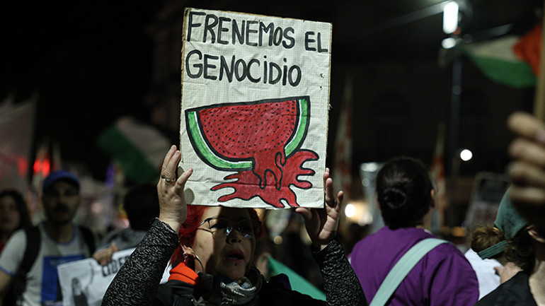 Güney Amerika ülkeleri Arjantin'in başkenti Buenos Aires ve Kolombiya'nın başkenti Bogota'da, İsrail'in Küresel Sumud Filosu'na düzenlediği saldırı protesto edildi. Buenos Aires'te ellerinde Filistin bayrakları taşıyan yüzlerce kişi, yürüyüş düzenleyerek İsrail'in saldırısını kınadı. Göstericiler, Filistin halkıyla dayanışma mesajı verirken, İsrail'in Gazze'de sürdürdüğü saldırıların durdurulmasını talep etti. Eyleme çok sayıda insan hakları temsilcisi, sendika ve sol gruplar destek verdi.