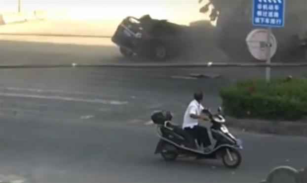 Dehşet veren kaza görüntülerinin adresi Çin. Başka bir araca çarpmamak için ani manevra yaptığı öğrenilen tanker şoförü, direksiyon hakimiyetini kaybetti. Kontrolden çıkan tanker, o sırada kontrollü bir şekilde seyreden cipin üzerine devrildi. Bu feci kaza görüntülere de anbean yansıdı.