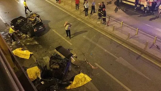 "Henüz kesin bir şey yok ama ilk tespitlere göre, bir taraftan gelen araç, ters yönden diğer tarafa uçmak suretiyle diğer aracın üzerine düşüyor. Cezalar, yasaklar önemli ama bilinç hepsinden daha önemli. Bu kazaları azaltacak olan trafik bilinci. Ne yazık ki bu konuda oldukça geriyiz. Bunu hiç kimse istemez. Yılda binlerce insanımız trafik kazaları yüzünden hayatını kaybediyor. Bu konuda hepimize görevler düşüyor. Hiç istenmeyen bir durum. Umarım bu son olur."