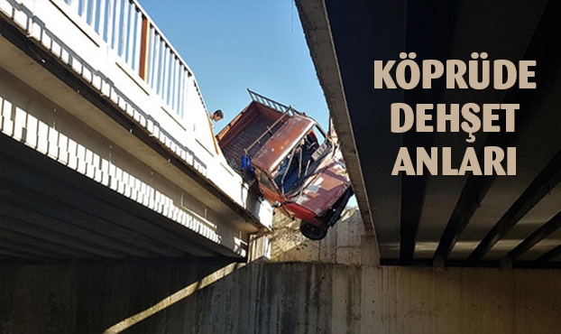 KARABÜK’te, sürücüsünün kontrolünden çıkan kamyonet iki köprü arasında askıda kaldı. AFAD ekipleri, çaya düşmemesi için kamyoneti halatla korkuluklara bağladı.