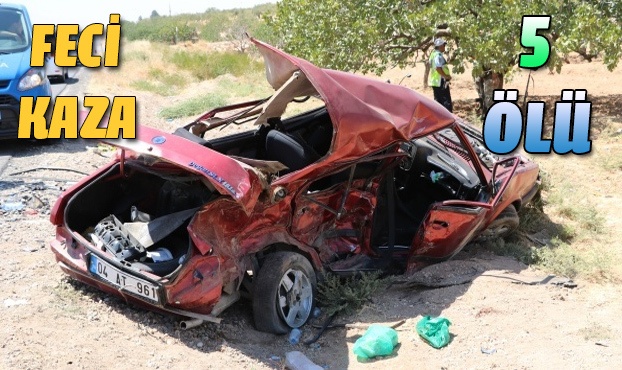 Gaziantep-Şanlıurfa karayolunda bir otomobil, karşı yönden gelen bir araca çarptı. Kazada aynı aileden 5 kişi öldü, 3 kişi de yaralandı.