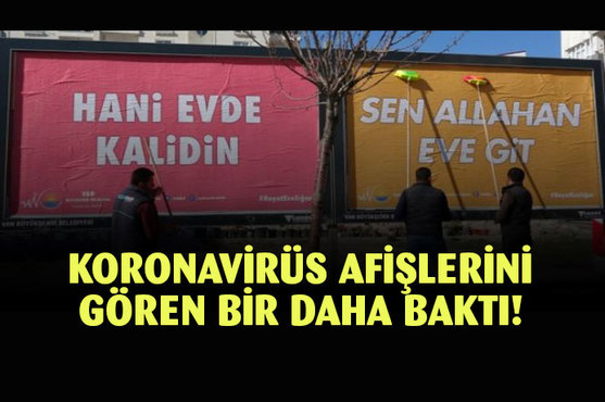 Van Büyükşehir Belediyesi tarafından korona virüsüne karşı vatandaşların sokağa çıkmaması için billboardlara ve otobüs duraklarına asılan yöresel şiveli afişler güldürdü.
