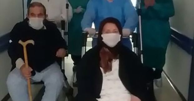 Bolu’da, korona virüs testleri pozitif çıkan 80 ve 81 yaşlarındaki Sare ve Osman Ulus çifti, tedavilerinin ardından alkışlar eşliğinde taburcu edildiler.