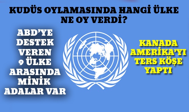 ABD'nin Kudüs kararının ardından Birleşmiş Milletler Genel Kurulu'nun olağanüstü gündemli toplantısında, ABD'nin kararını geri çekmesini öngören bir tasarı oylandı.Peki buna göre BM'de hangi ülke ne oyu kullandı? İşte ABD ve İsrail'in yanında yer alan ülkeler