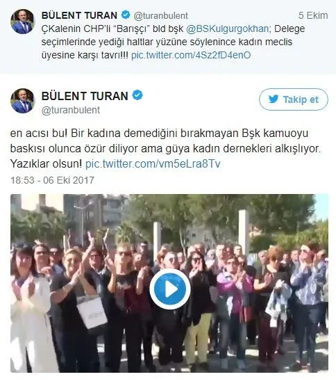 Öte yandan CHP yönetiminin Çanakkale Belediye Başkanı Ülgür Gökhan için özür dileyerek inceleme başlattığı bildirildi.
