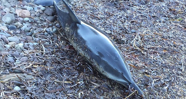 Yalıkavak Mahallesi Küdür Yarımadası Zeytin Koyu Sahili’nin kıyısında ölü yunus balığı bulundu. Başından yaralı olan dişi yunus balığını sahilde yürüyüş yapan Kadriye Özcan ve Kamil Özcan çifti buldu. 1.70 metre boyunda ve yaklaşık 60 kilo ağırlığında olan yunus balığının başından tek kurşunla vurulduğu iddia edildi.
