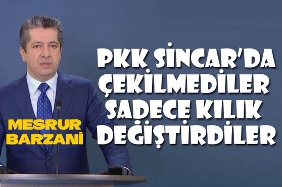 IKBY Başbakanı Mesrur Barzani, "PKK, Sincar'dan çekilmedi. Sadece birkaç saatliğine kıyafet değiştirip Sincar Dağı'na çekildi" açıklamasında bulundu.