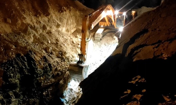 Aydın'ın Kuşadası ilçesinde bir işçi meydana gelen göçüğün altında kalırken, ekiplerin işçiyi kurtarma çalışmaları sürüyor.