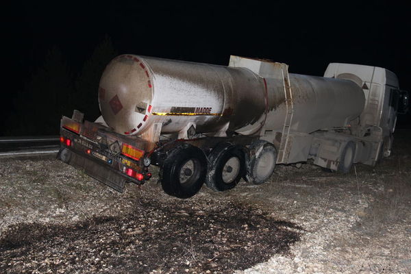 20 kilometre boyunca dökülen asidin lastikleri eritmesi sonucu tanker şarampole devrildi