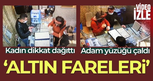 Daha sonra erkek şüpheli, el hızlılığıyla 4 bin lira değerindeki altın yüzüğü cebine attı. Bir süre daha kuyumcuda oyalanan çift daha sonra iş yerinden ayrıldı. Müşteri gibi kuyumcuya giren hırsızlar iş yerinden ayrıldıktan sonra tabloda yüzüklerden birinin eksik olduğunu fark eden kuyumcu Mehmet Emin Turan (30), kamera kayıtlarını inceledikten sonra yüzüğün çalındığını fark etti. Bunun üzerine kuyumcu, durumu polis ekiplerine bildirdi.