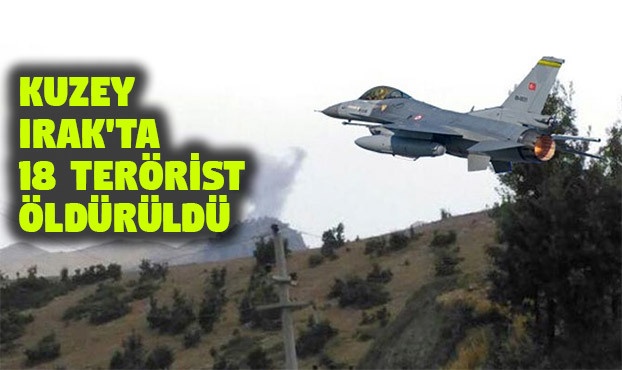 Kuzey Irak'ta teröristlere yönelik operasyon hız kesmeden devam ediyor. TSK'dan yapılan açıklamaya göre bugün Kuzey Irak'a düzenlenen hava harekatında 18 terörist öldürüldü.