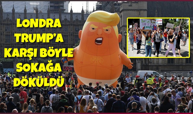 Sabah 9.30 sularında "bebek bakıcıları" tarafından tezahüratlar arasında uçurulan 6 metre boyunda, elinde cep telefonu tutan bezli 'Bebek Trump' balonunu göstericiler tarafından toplanan 29 bin sterlin bağışla yaptırılmıştı.