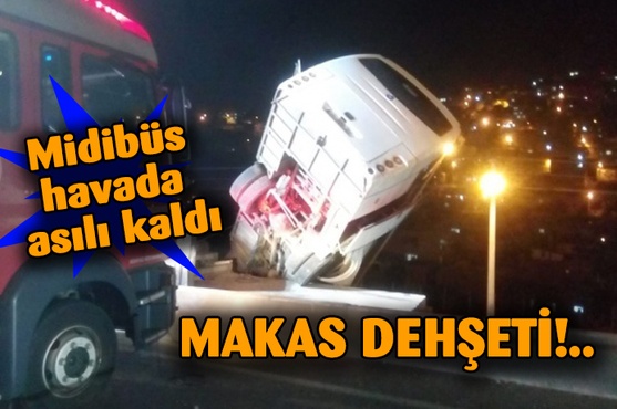 Çarpmanın etkisiyle cip sürücüsü de direksiyonu hızlıca kırınca midibüse vurdu. Daha sonra hakimiyetini kaybeden servis midibüsü, sağ şeritteki yan yola doğru uçtu. Aşağıya doğru düşen araç ardından askıda kaldı.
