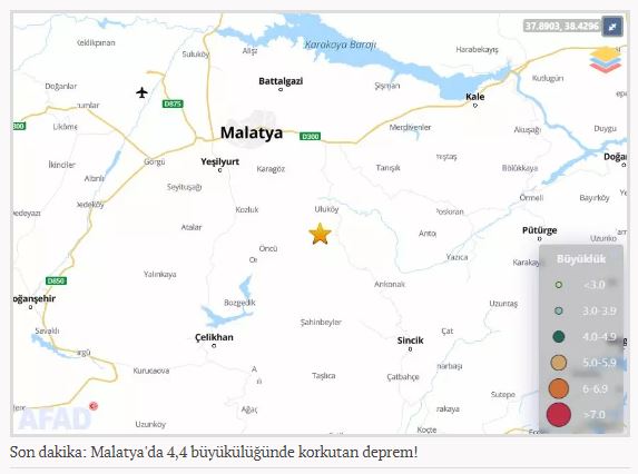 AFAD, merkez üssü Malatya'nın Yeşilyurt ilçesi olan 4,4 büyüklüğünde deprem meydana geldiğini duyurdu.