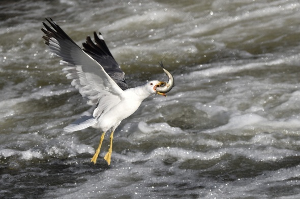 martıların balık avlarında ortaya çıkan enstantaneleri fotoğraflayarak arşivlerine katıyor.