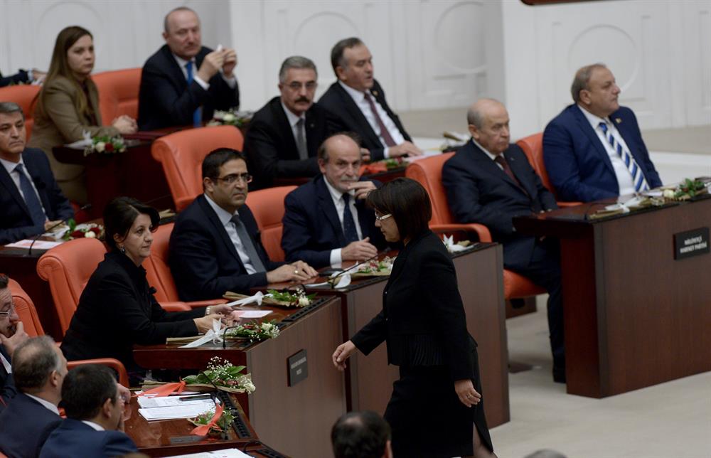 HDP Meclis’te üçüncü parti olduğu için, milletvekilleri daha önce MHP’ye ait koltuklarda oturdu. En sağda MHP grubu yer aldı.