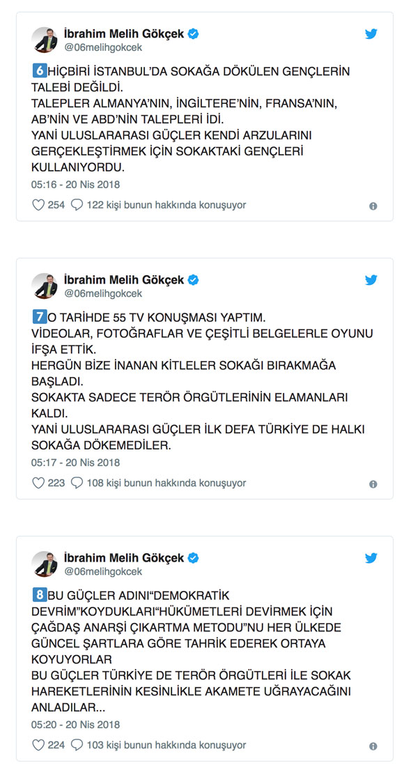 İşte Melih Gökçek'in Twitter hesabından yaptığı o paylaşımlar...