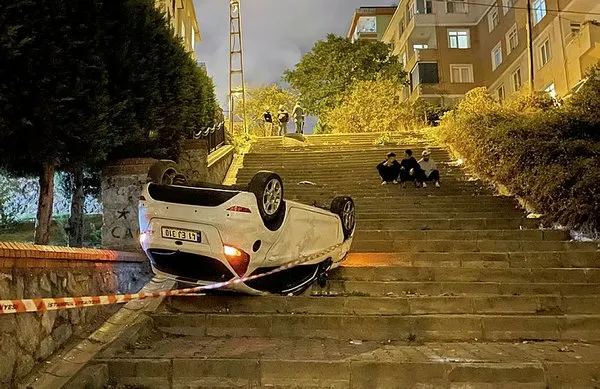 Ümraniye'de cep telefonundaki navigasyon uygulamasının yönlendirmesi sonucu yanlışlıkla merdivenli sokağa giren sürücü, aracıyla takla attı. Kazayı yara almadan atlatan sürücü Osman Karaoğlan konuyla ilgili olarak yaptığı açıklamada, ''Yukarıdan geliyordum. Navigasyon burayı sokak olarak gösteriyordu. Sağ yapmamla takla atmam bir oldu. İçeride kendimi korudum, ucuz kurtuldum'' dedi.