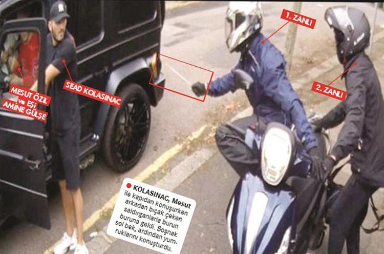 Mesut Özil, bir paket almak için eşi Amine Gülşe ile birlikte takım arkadaşının evine gidiyor. Kolosinac’ın dışarı çıkmasıyla da kapkapççılar harekete geçiyor. Biri uzun bıçağını çekip Kolasinac’a doğrulturken, Amine Gülşe panik halinde bağırmaya başlıyor.