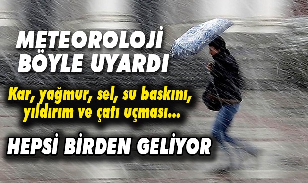 Meteoroloji'den çok kritik uyarılar! Kar, yağmur, sel, su baskını, yıldırım ve çatı uçması...