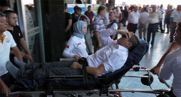 MHP ilçe yöneticileri, başkana yer ayrılmadığı gerekçesiyle Nazilli Belediyesi Kültür İşleri Müdürü Fatih Demir’i darp etti. Yığılıp kalan ve ilk müdahalesi tören alanında hazır bekleyen 112 ekiplerince yapılan Demir, daha sonra ambulansla hastaneye kaldırıldı. Kurtuluş gününe damgasını vuran olayları görüntülemek isteyen gazetecileri de tehdit eden MHP Nazilli İlçe Başkanı Zafer Keskin, gazetecilere hitaben “Bu haber çıkarsa papaz oluruz. Önce aklınızı sonra canınızı alırım” diye tehdit etti.